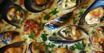 Mussels with Parmesan Cream SauceIngredientsFor the mussels: 2 lbs (900 g) fresh mussels, cleaned and debearded1 tbsp olive oil2 tbsp…