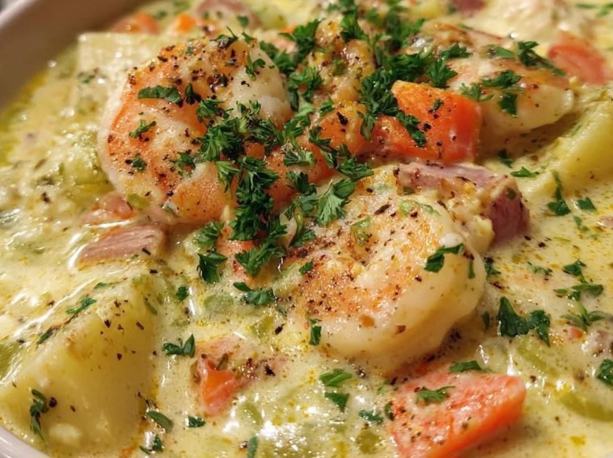 This chowder combines tender chunks of flaky cod, succulent shrimp, and soft potatoes simmered in a creamy, savory broth. The depth of flavor comes from a base of sautéed aromatics, a hint of smokiness from bacon, and a touch of cream for that luxurious finish.