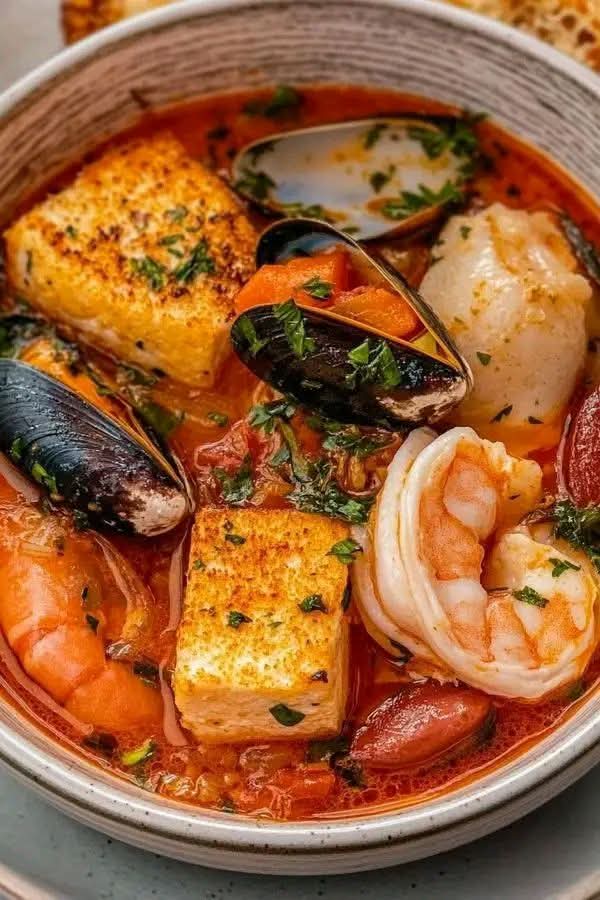 Ladle the bouillabaisse into bowls. Garnish with fresh herbs and serve with toasted French bread and rouille if desired.