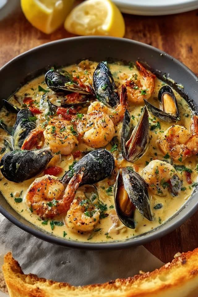This dish captures the essence of coastal dining — creamy, aromatic, and indulgent — while remaining easy enough for a weeknight dinner. Whether served over pasta, alongside crusty bread, or presented as a stunning centerpiece for guests, this seafood masterpiece never disappoints.