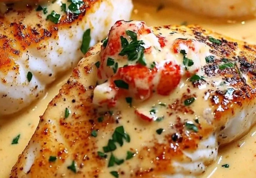 🐟 Seared Snapper with Lobster Cream Sauce 🦞