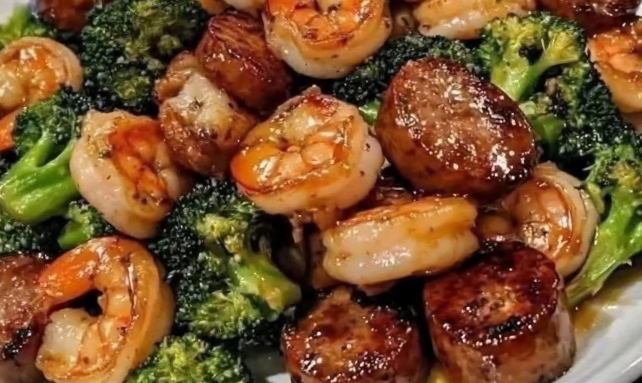 Return the shrimp and sausage to the pan. Pour the honey garlic sauce over everything and toss well.
